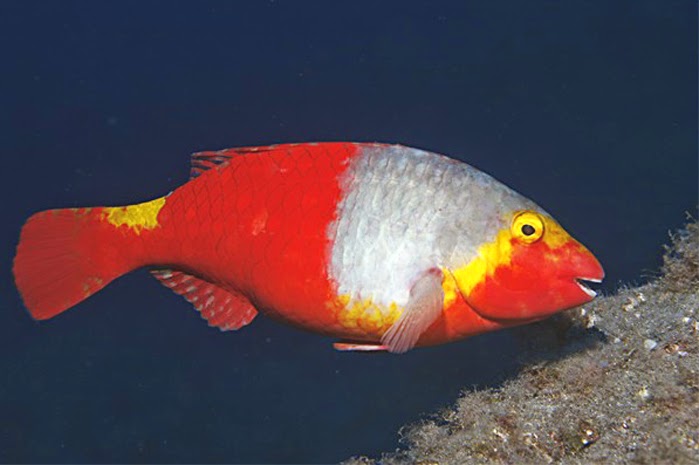 referencia a unos de los peces más apreciados en las islas, la Sparisoma (Euscarus) cretense que en